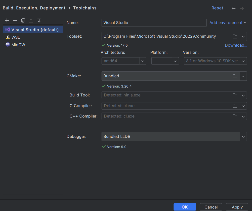 - If you have already configured your toolchain to use anything but MinGW64, then you can skip to the next section. Otherwise, it is critical that you follow along with this section. It should also be noted that you need Visual Studio for this.