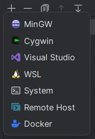 If you don't have the Visual Studio toolchain, you can hit the plus symbol above the list of toolchains and add a toolchain. This is also how you can add WSL as a toolchain!