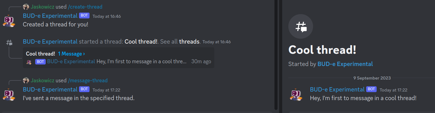 If all went well, you'll see that the bot has successfully created a thread!