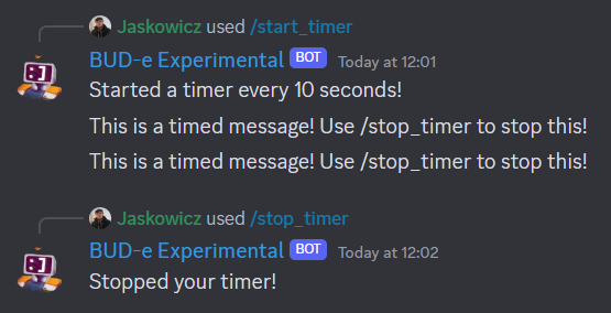 To finish off, let's make a timer that you can start and stop with commands. This example will store the timer in a map where the user is the owner of the timer!